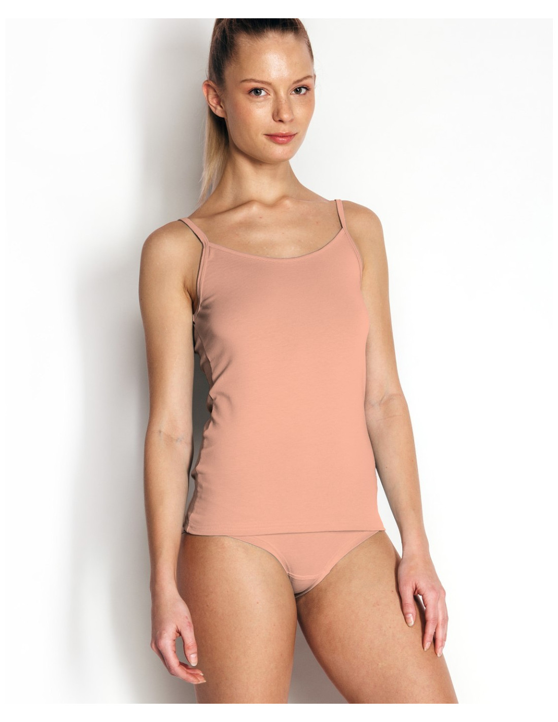 Bombažna majica z ozkimi naramnicami je odlična izbira za vse, ki želijo naravno udobje, dolžino in diskreten videz – kot spodnji ali vrhnji kos.